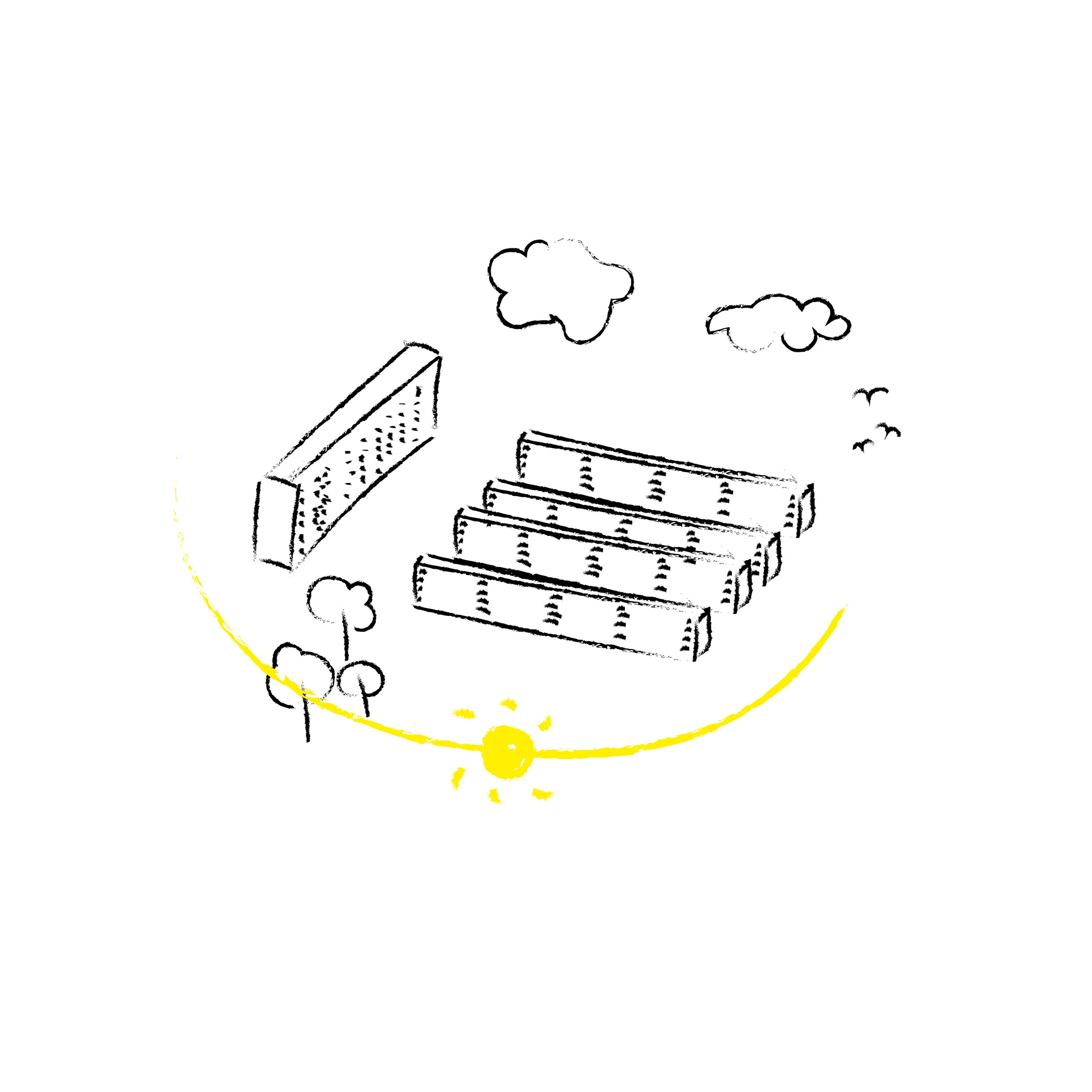 The concept of SOLARBLOCK is counter acting the current principles of extractivism and capital gains by stopping demolition and developing new circular concepts of regeneration through improvement and extension of existing standardised free standing post-war social housing blocks. This is achieved on the one hand through meticulous analysis of existing structures, striving for minimal intervention, while on the other hand creating an efficient and sustainable low-tech system for extending existing structures.